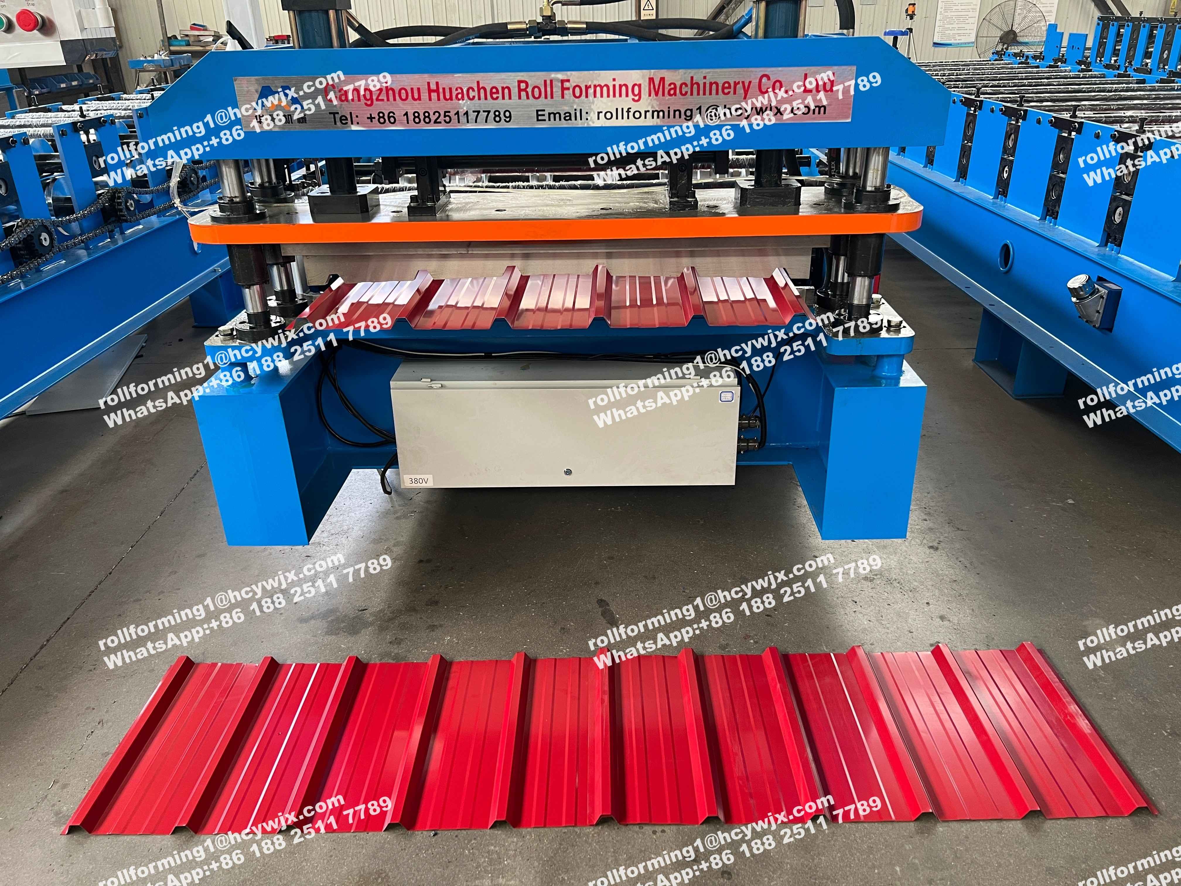 La machine de formage de rouleaux de tôles de toiture est également appelée machine de fabrication de tôles de toiture ou machine de panneaux de toiture.dispositif d'arrêt pour couper, table de décharge, système hydraulique et contrôleur électrique et est largement utilisé dans la construction de structures en acier entrepôts à grande échelle, usines, supermarchés, centres commerciaux, marchés commerciaux, hôtels,maisons de campagne, résidences et différents types de serres.